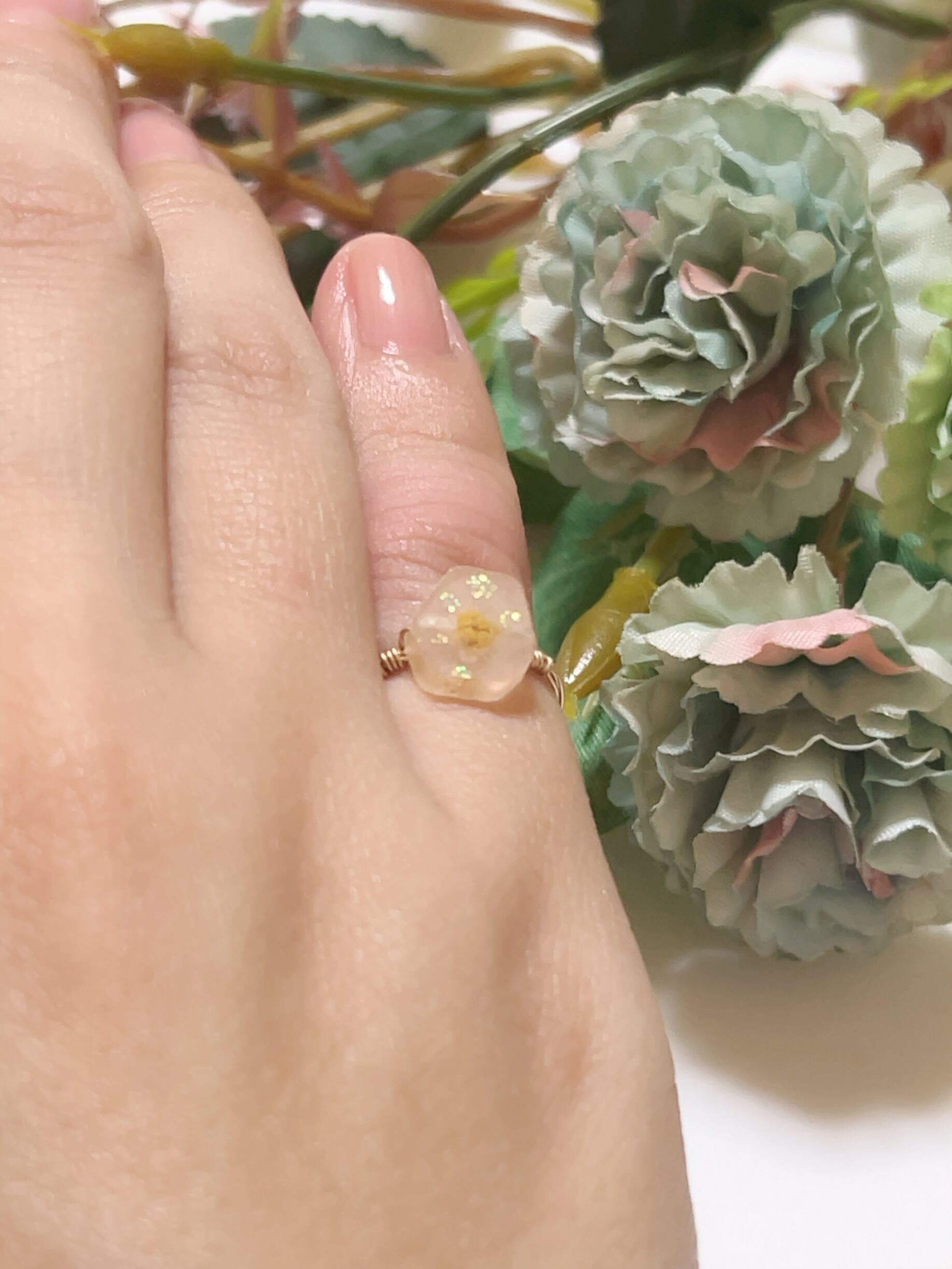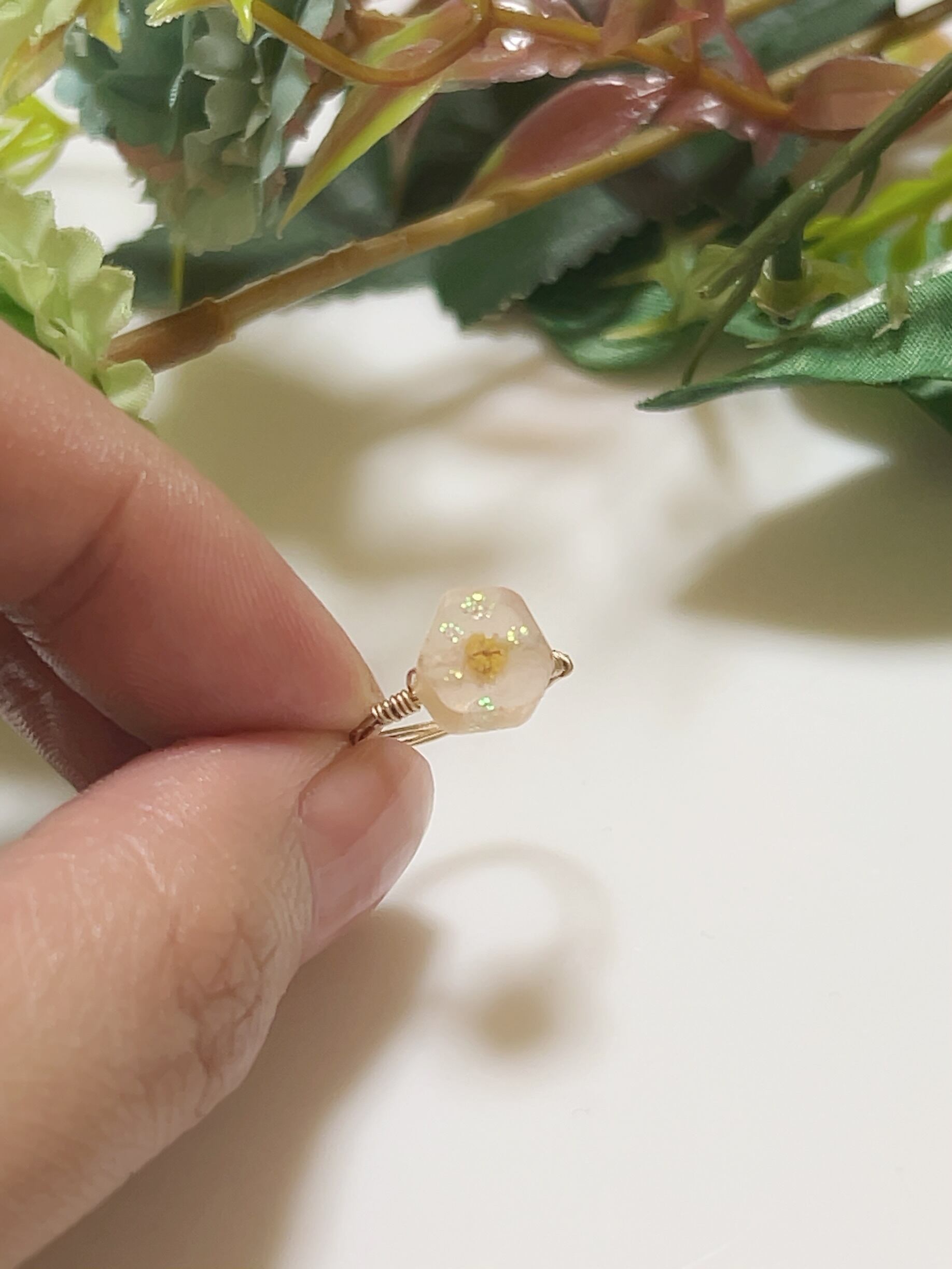 素材 ワイヤー14KGF、レジン、ミモザ
